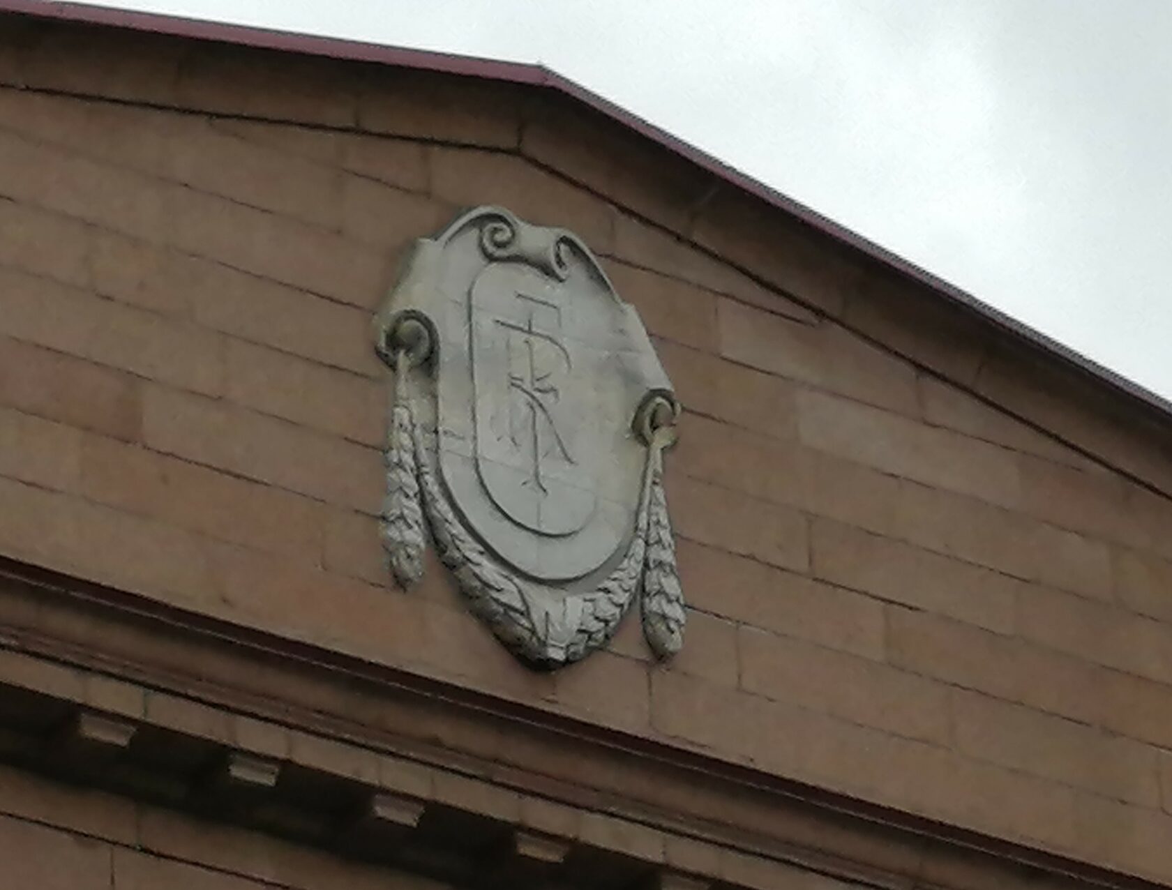 | Главный северный фасад облицован гранитом разной фактуры, исполнен в стиле неоклассицизма, имеет крупный масштаб членений. Северный фасад симметричной трехчастной композиции, с повышенными боковыми ризалитами, в центре завершен треугольным фронтоном с гербом в тимпане. В простенках равномерно расположенных прямоугольных окон на центральной части фасада — пилястры из светлого полированного мрамора, объединяющие второй и третий этажи. В первом этаже, обработанном под шубу — крупные прямоугольные проемы витрин, между которыми имеются узкие двери, служившие входами в магазины. В левом ризалите размещена полуциркульная въездная арка. Над ней на дворовом южном фасаде нависает на консоли в форме раковины полукруглый эркер-фонарик в уровне третьего этажа, завершенный декоративным полукуполом. Дворовые фасады корпуса и пристройки кирпичные, не оштукатуренные. |